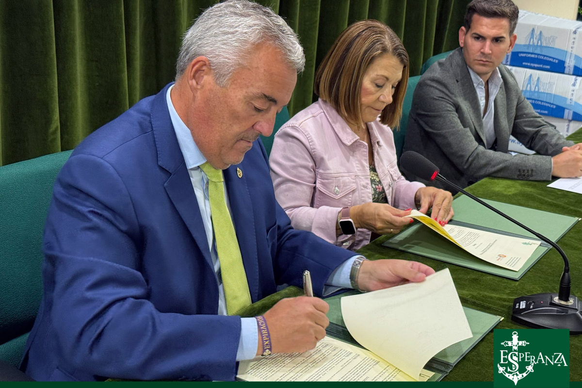 En la tarde de ayer martes 8 de octubre, la Hermandad de la Esperanza formalizó un convenio de colaboración con la Asociación FEAFES-HUELVA SALUD MENTAL (Asociación de Familiares y Personas con Problemas de Salud Mental de Huelva y su provincia).