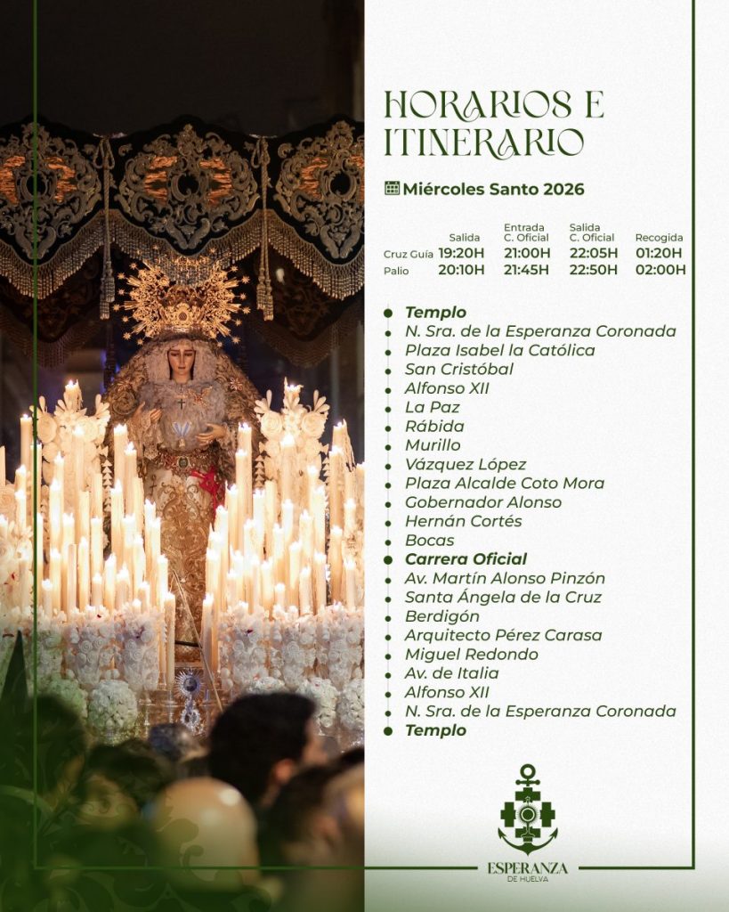 ESTACIÓN DE PENITENCIA | El próximo Miércoles Santo, 1 de abril, llevaremos a cabo la estación de penitencia con los siguientes horarios e itinerarios.