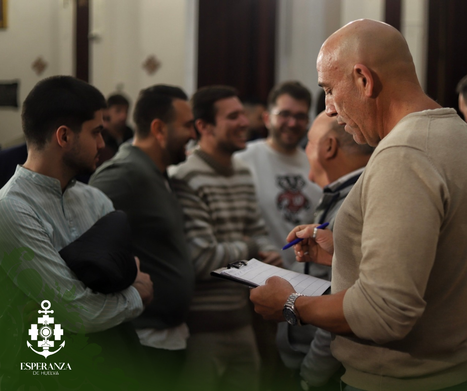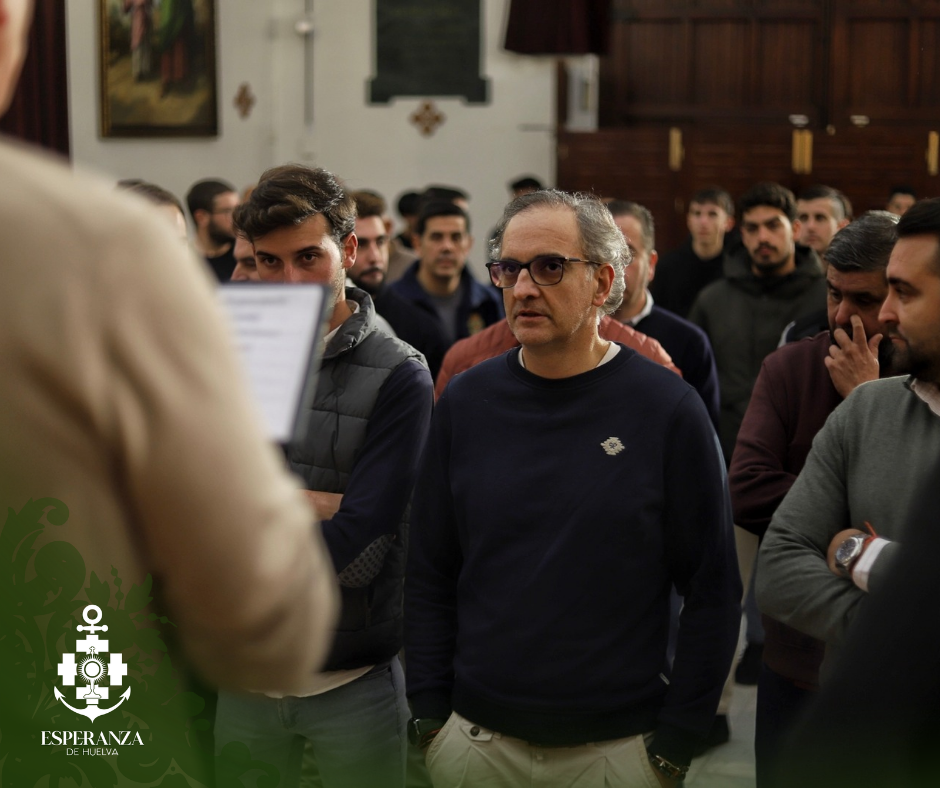A la cita han acudido las dos cuadrillas que conforman este imponente paso, junto a un elevado número de aspirantes que, con devoción y compromiso, desean tener el honor de portar sobre sus hombros al Santísimo Cristo de la Expiración.