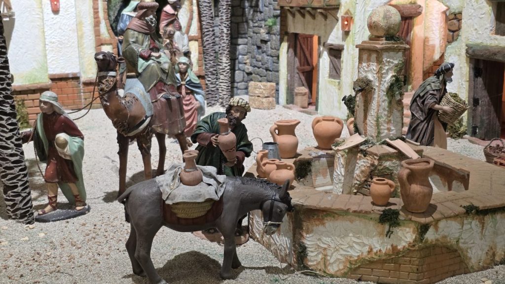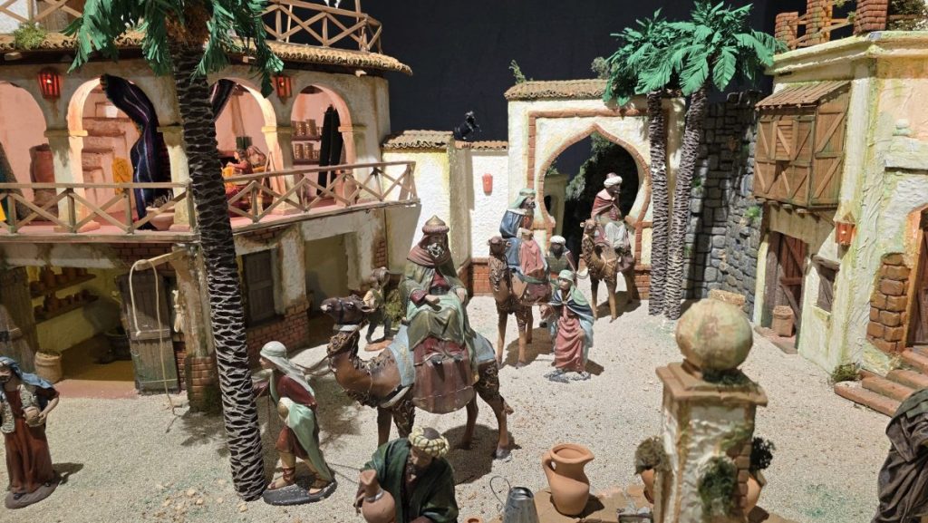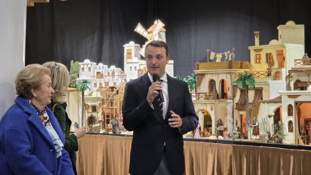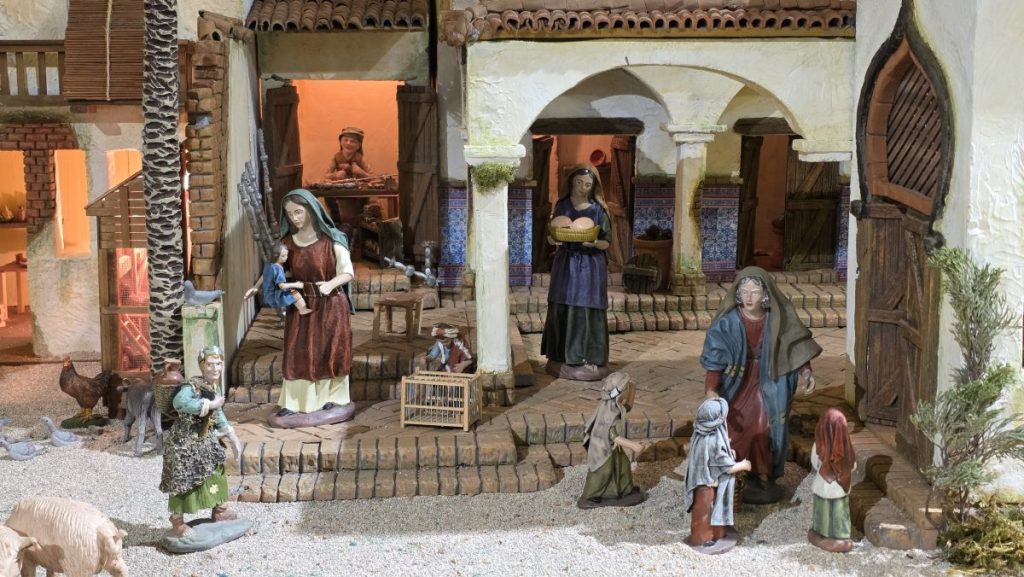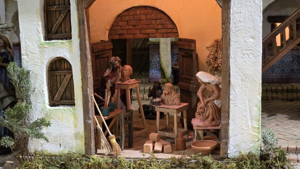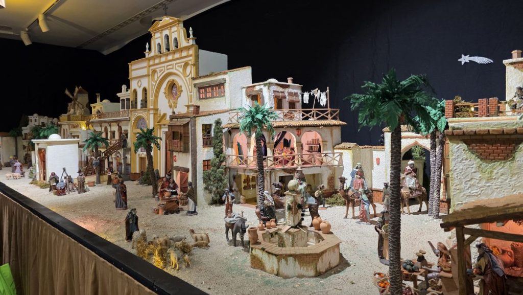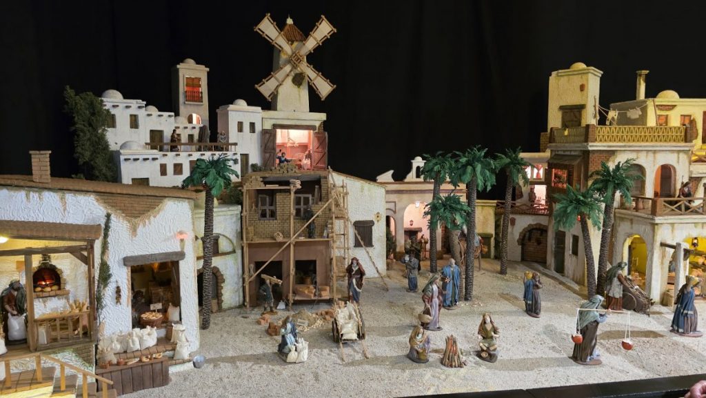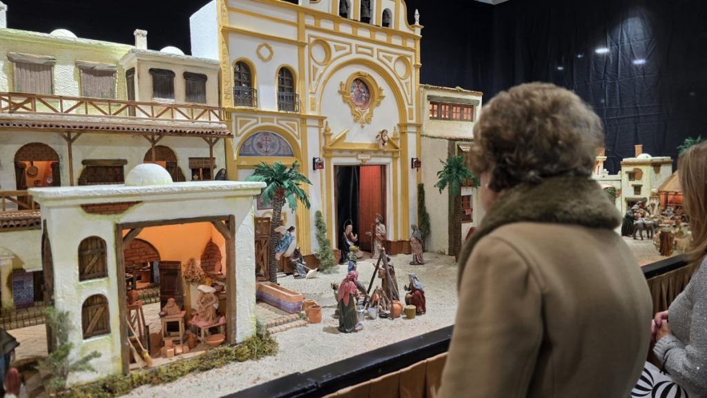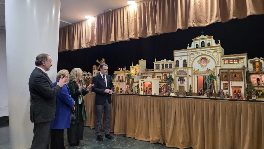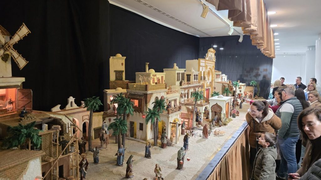 En la tarde de ayer jueves 11 de diciembre, se inauguró el Belén de la Esperanza en la sala de exposiciones de la Caja Rural del Sur. Una obra de más de ocho metros que pone en el centro del Nacimiento nuestro templo, rodeado de escenas tradicionales, que se mezclan con algunas propias cofrades como taller de bordado, la pintura, la talla, la escultura o la orfebrería. Una obra montada por la priostía de la hermandad.