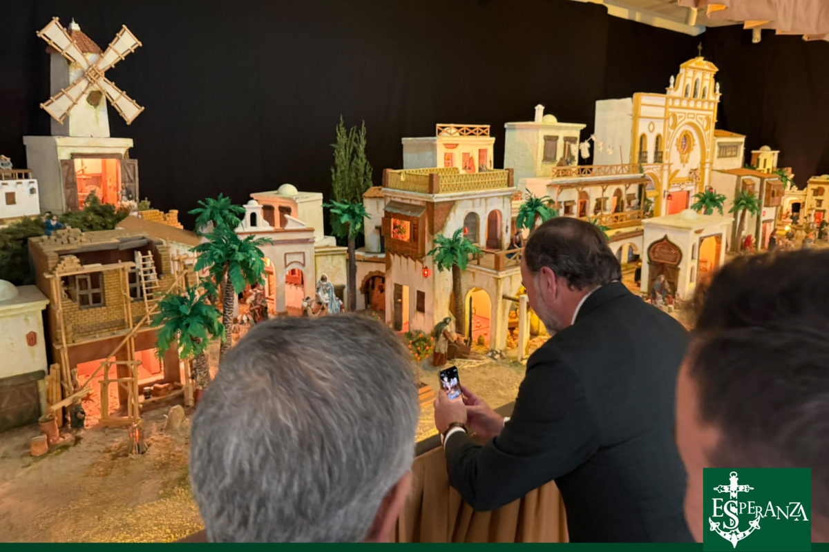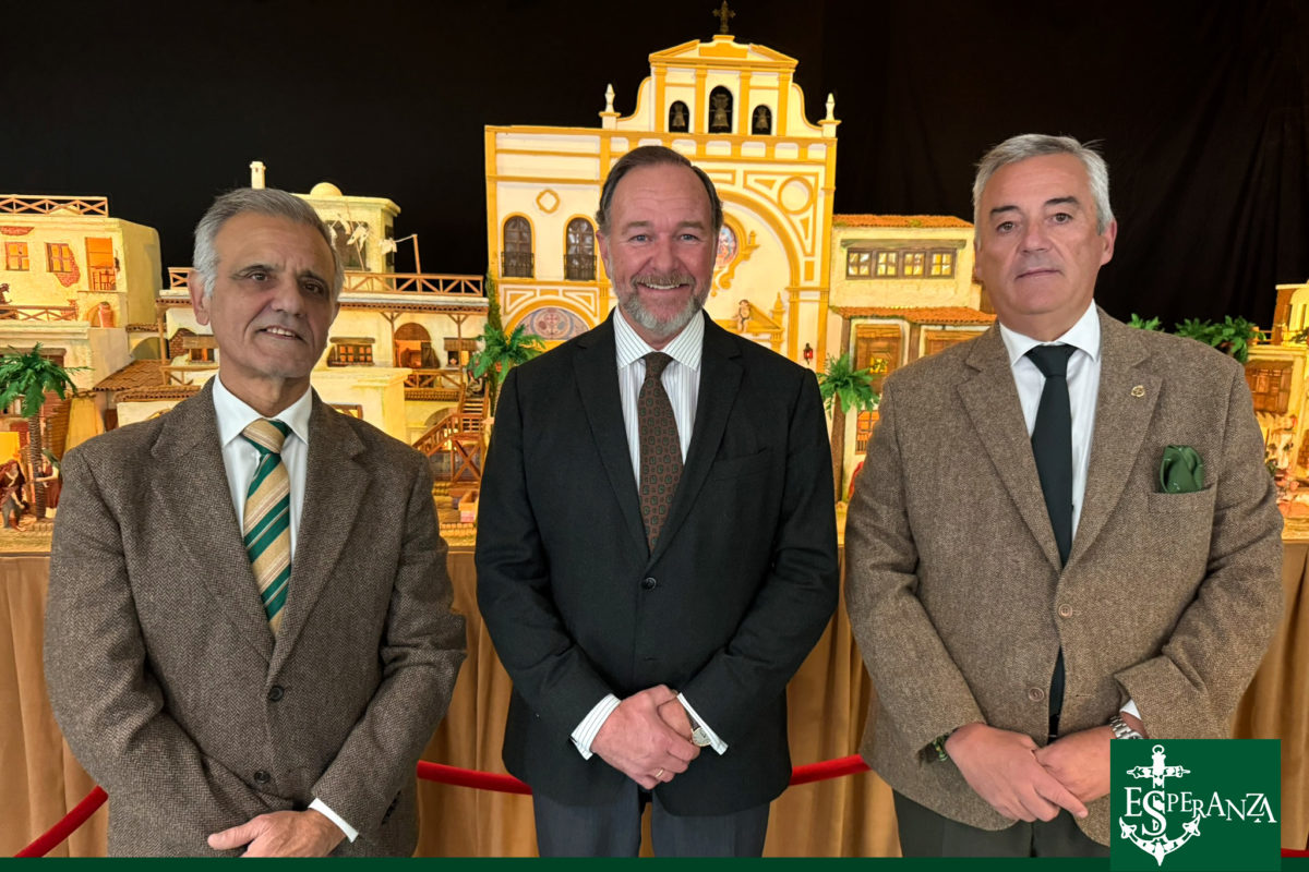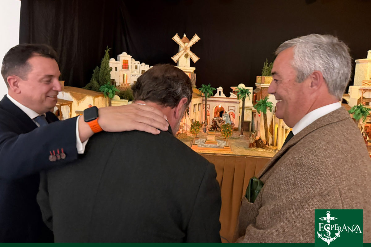 Ayer tuvo lugar la inauguración del tradicional Belén de la Hermandad de la Esperanza en el Centro Cultural José Luis García Palacios, de la Fundación Caja Rural del Sur. Este emblemático acto navideño contó con la presencia de José Luis García-Palacios Álvarez, presidente de la Fundación Caja Rural del Sur, José Manuel Mora Soler, hermano mayor de la Hermandad, y Antonio Quiñones Pérez, prestigioso belenista y capataz del paso de la Virgen de la Esperanza, acompañado de su esposa, Esther.