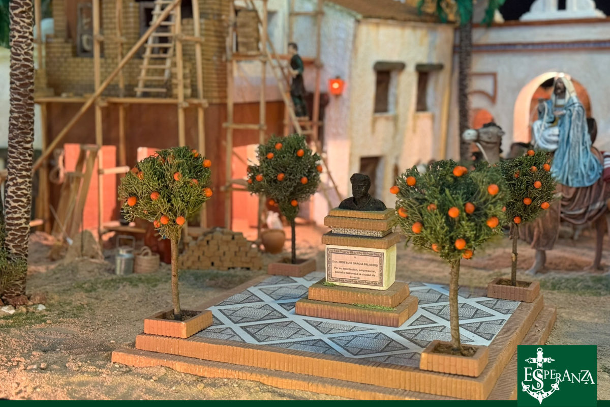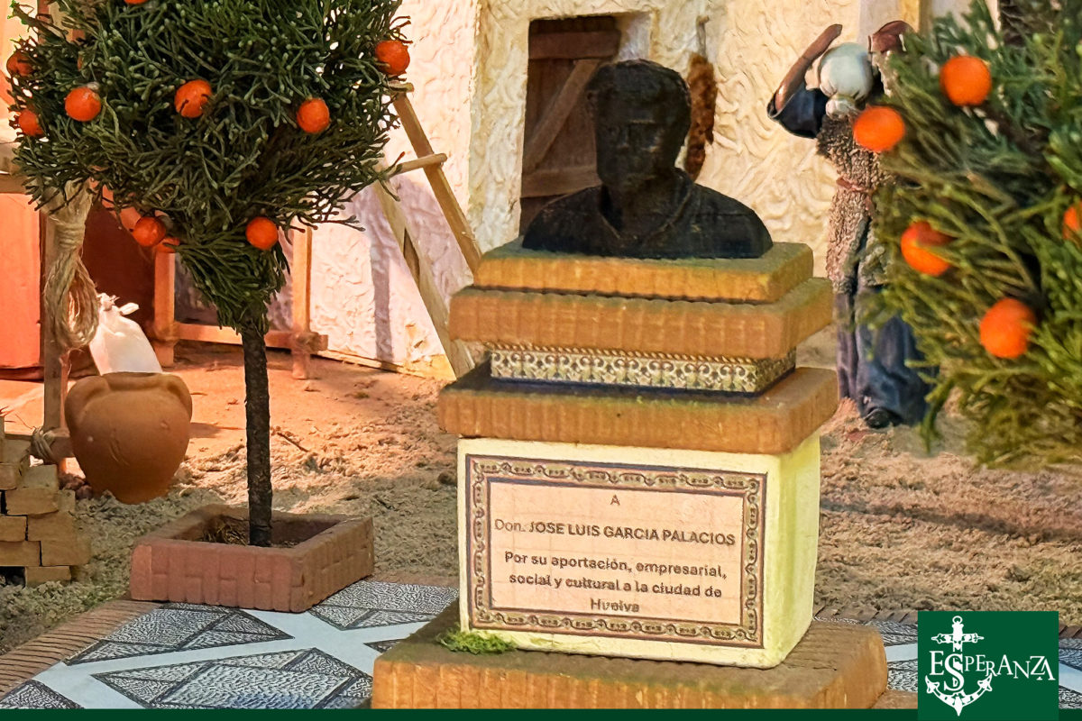 El momento más especial se vivió tras el encendido oficial del Belén, cuando se mostró a José Luis García-Palacios Álvarez un detalle único: la recreación de una plaza rodeada de naranjos, que incluye una estatua en homenaje a su padre, José Luis García Palacios, como reconocimiento a su contribución a la comunidad onubense. La emoción del presidente al contemplar este significativo detalle llenó el ambiente de gratitud y admiración.