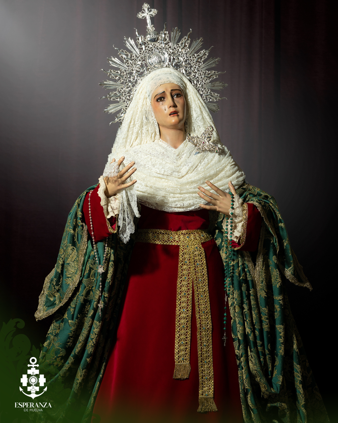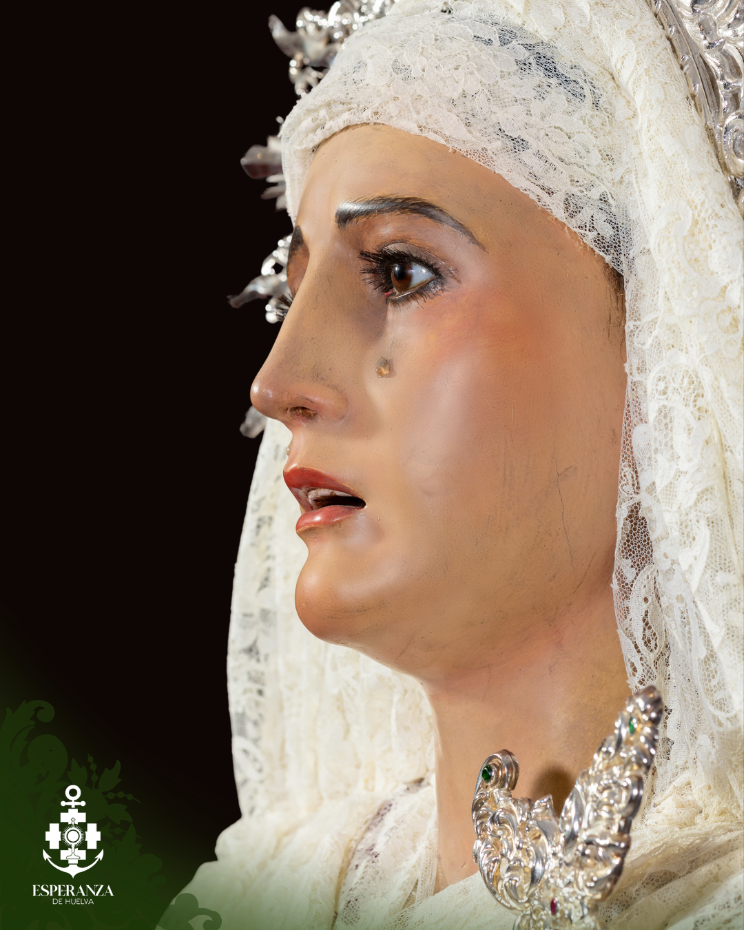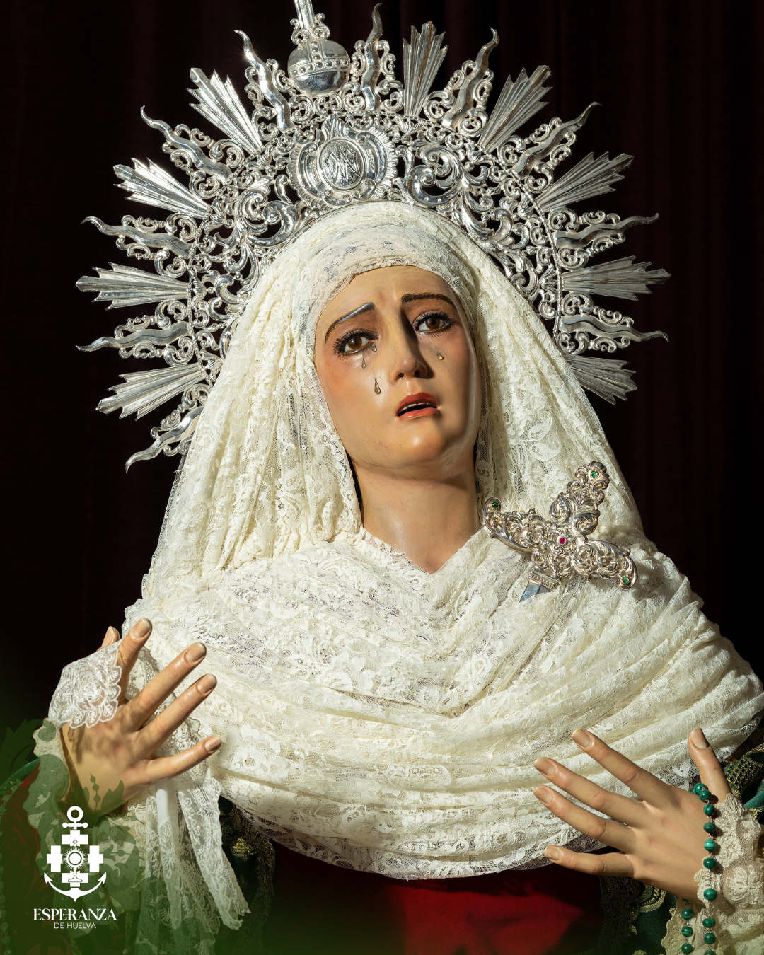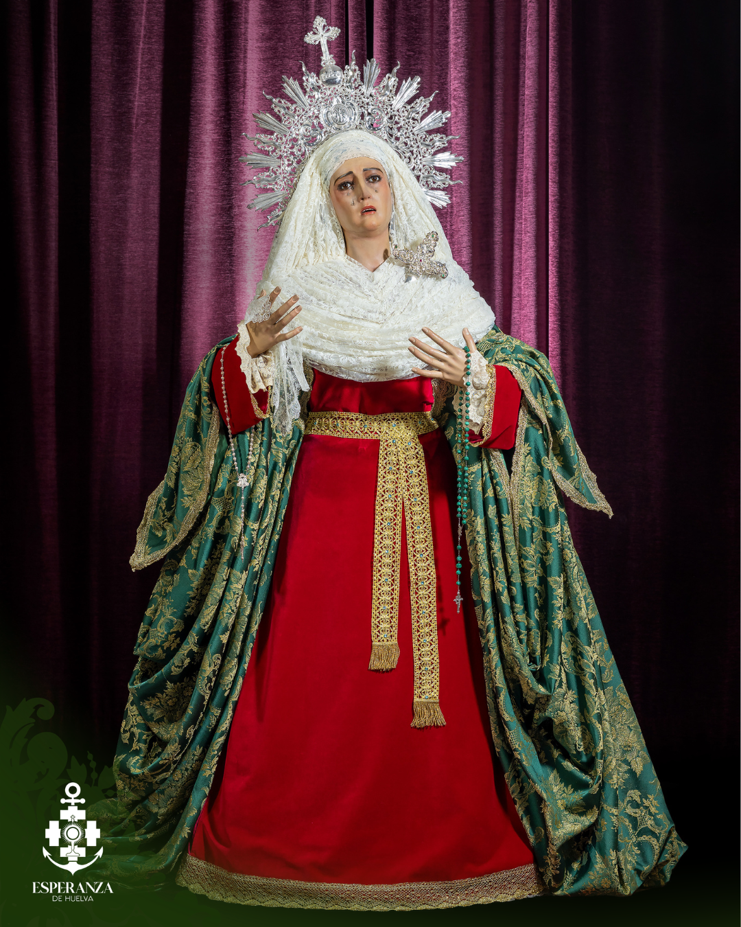 Así luce María Santísima del Mayor Dolor para el Tiempo de Pascua de Resurrección, ataviada por su vestidor D. José Fernández García.