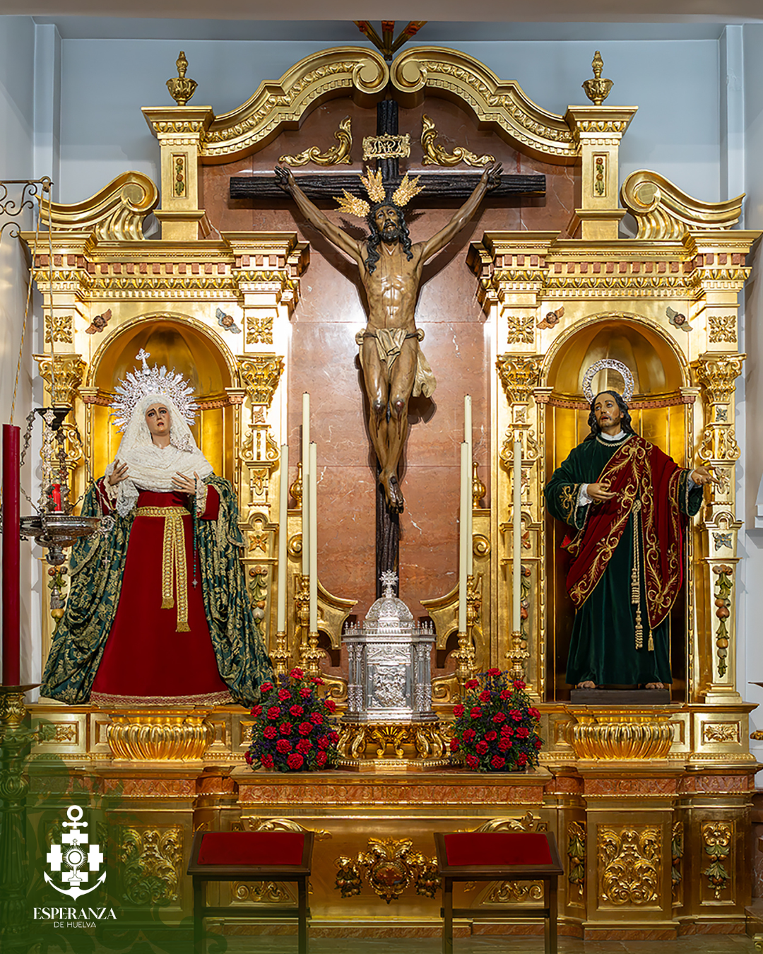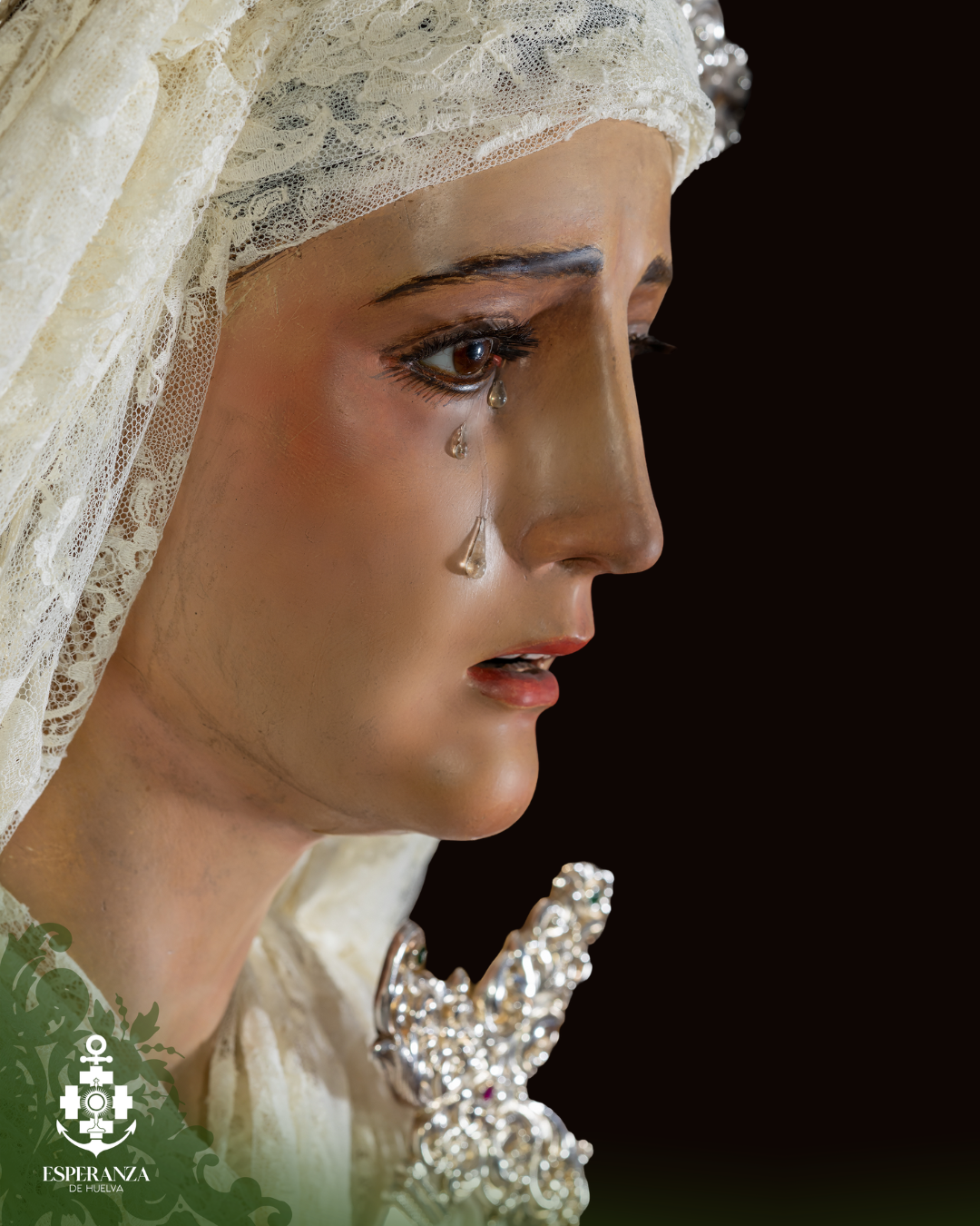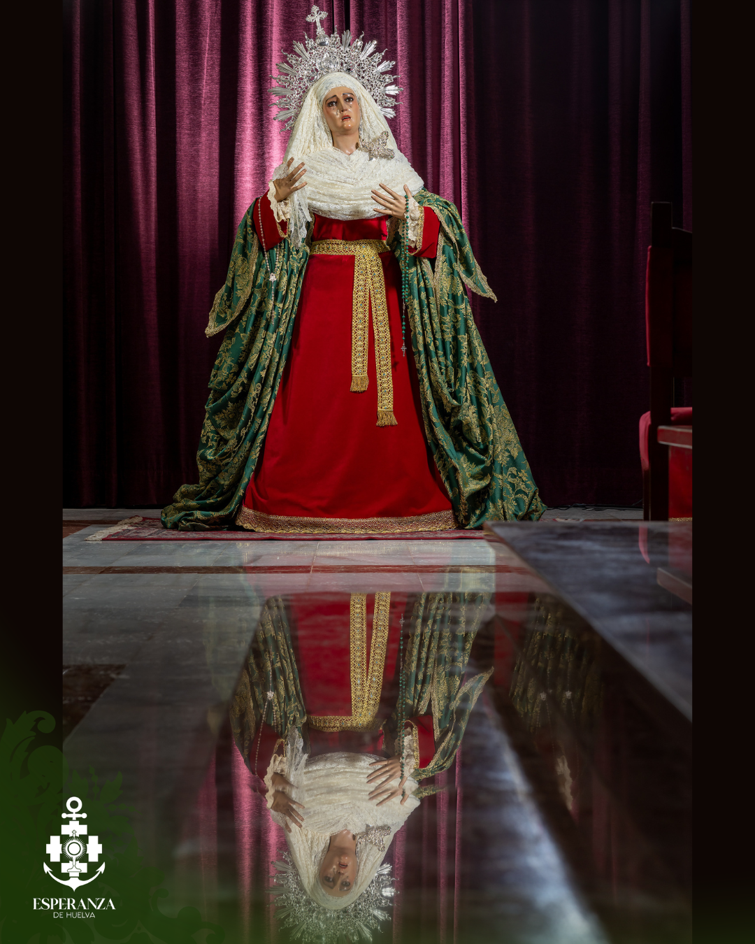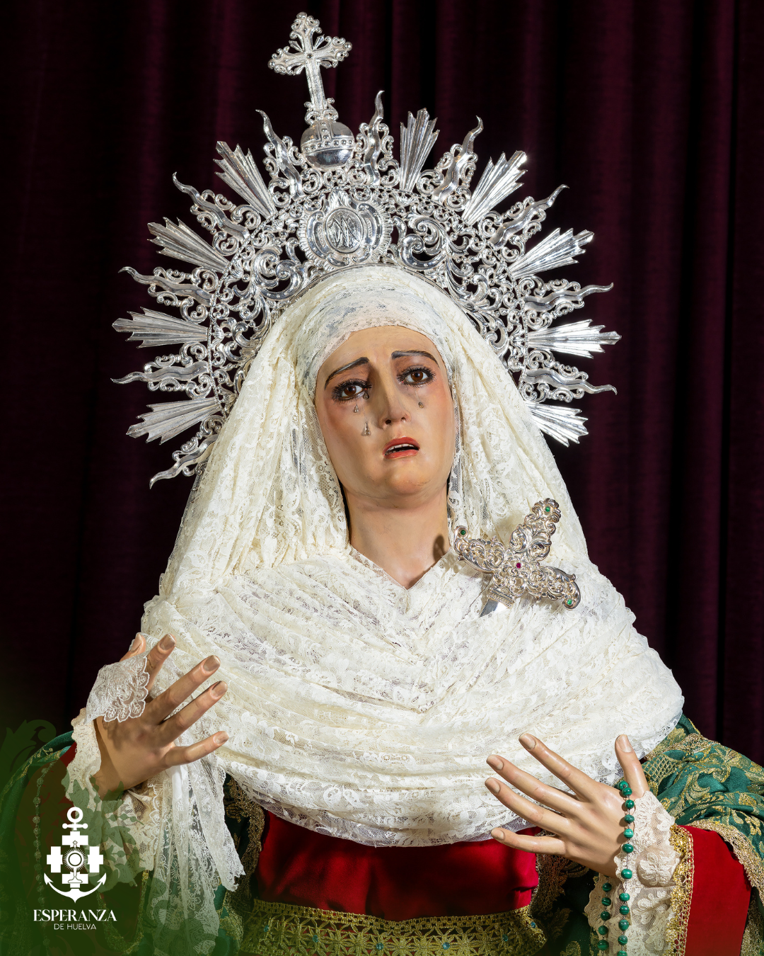 Así luce María Santísima del Mayor Dolor para el Tiempo de Pascua de Resurrección, ataviada por su vestidor D. José Fernández García.