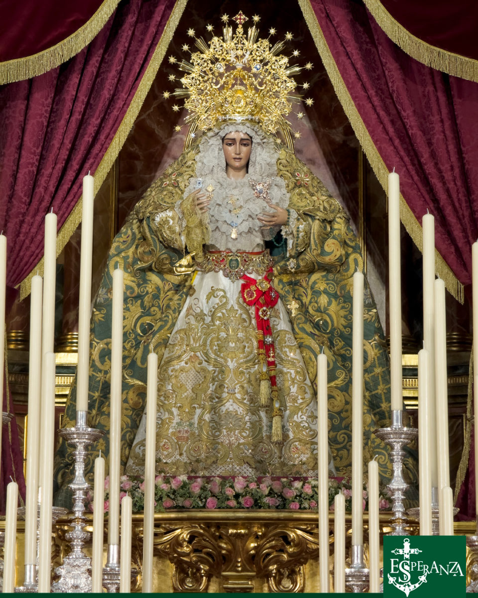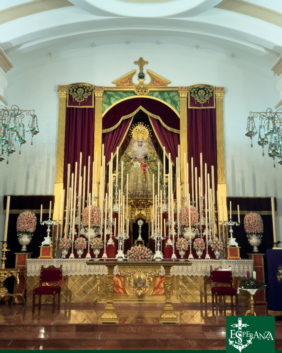 La Iglesia de Santa María de la Esperanza amanece con Nuestra Señora de la Esperanza Coronada entronizada en su altar para presidir los Solemnes Cultos en su Honor.