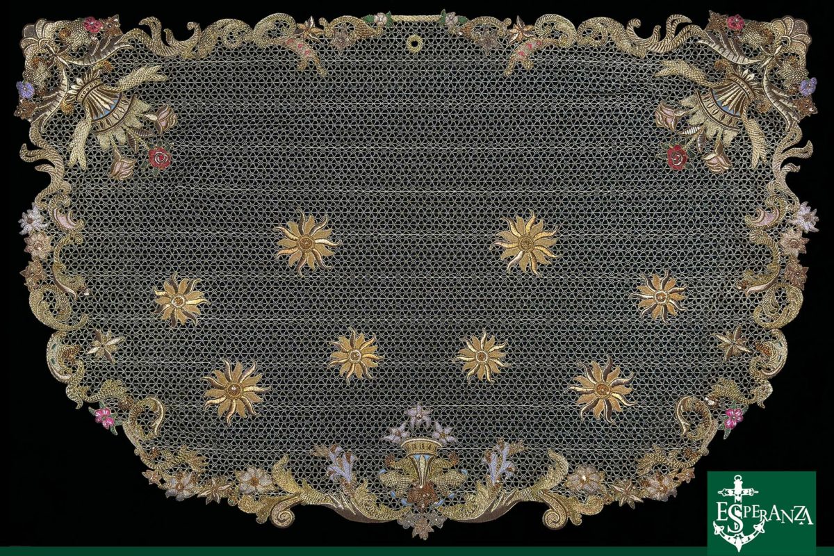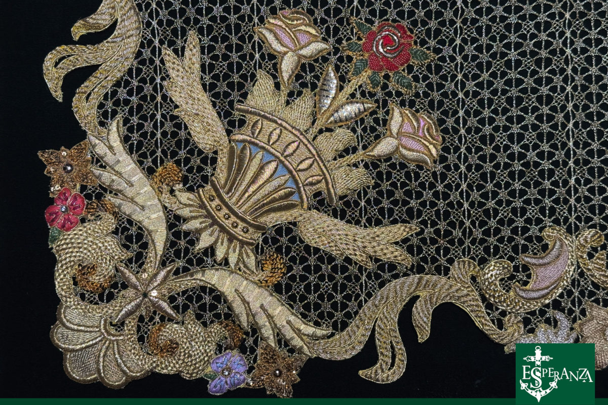 En el día de hoy, ha sido presentada la nueva Toca de sobremanto de camarín para Nuestra Señora de la Esperanza. Una obra realizada por nuestro hermano D. Alfonso Carlos Romero Fernández, quien ha sabido dar nueva vida a bordados de la Hermandad que ya no estaban en uso, rescatando sus piezas y enriqueciéndolas con esmero y arte.