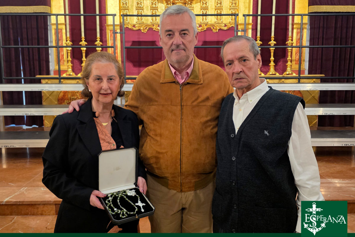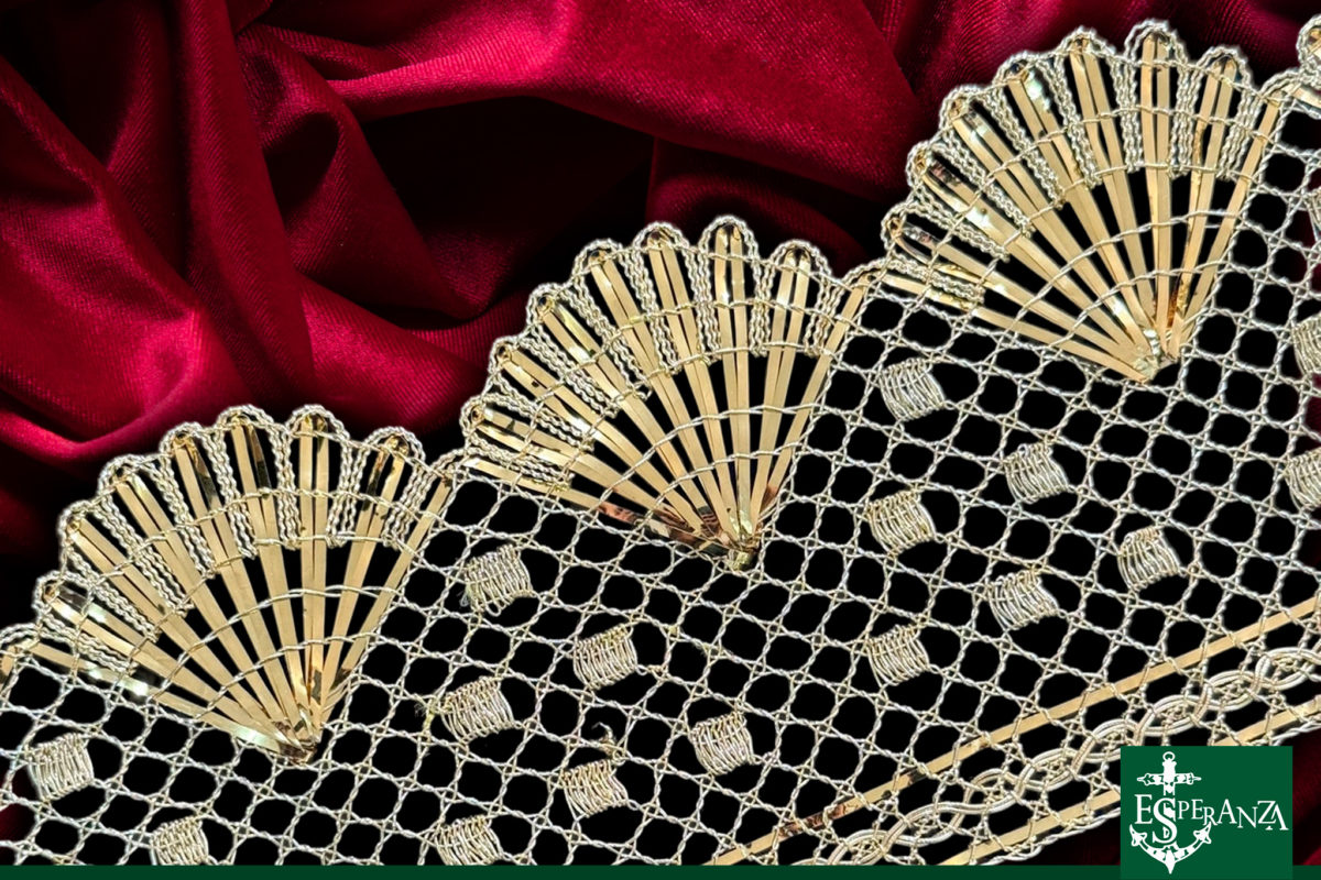 – Igualmente, ofrecieron el nuevo encaje de oro que sustituirá al actual en el manto de salida de Nuestra Señora de la Esperanza. Esta magnífica obra, realizada por Jesús Gómez Jiménez, está confeccionada en hilos de oro y cuenta con un ancho de 9 centímetros, otorgando aún mayor realce y riqueza al ya espléndido manto procesional de la Santísima Virgen.