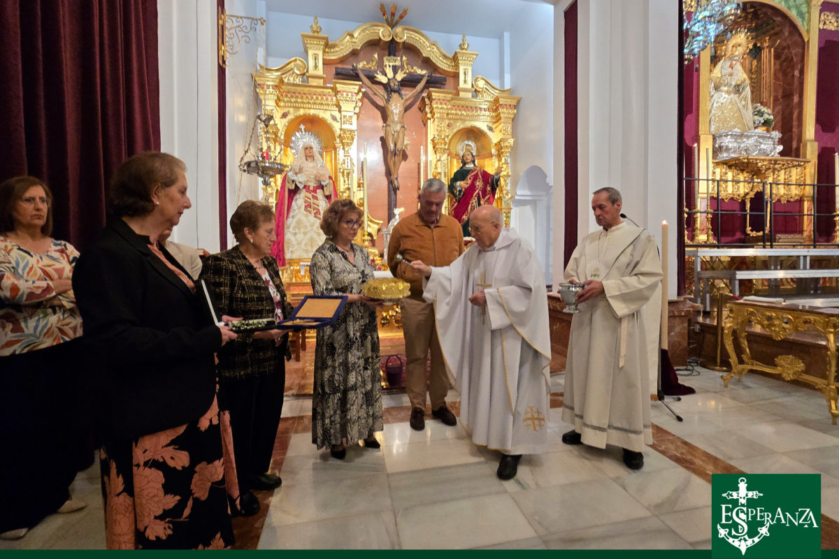 En la tarde de ayer, durante la celebración de la Santa Misa y Sabatina en honor a Nuestra Señora de la Esperanza, tuvieron lugar unos emotivos momentos con motivo de la bendición y ofrenda de diversas piezas que, a partir de ahora, pasarán a formar parte del ajuar de nuestra Amantísima Titular.