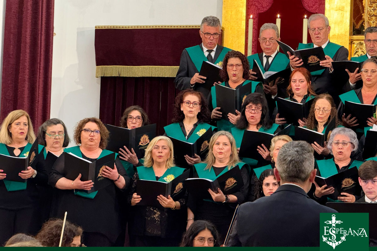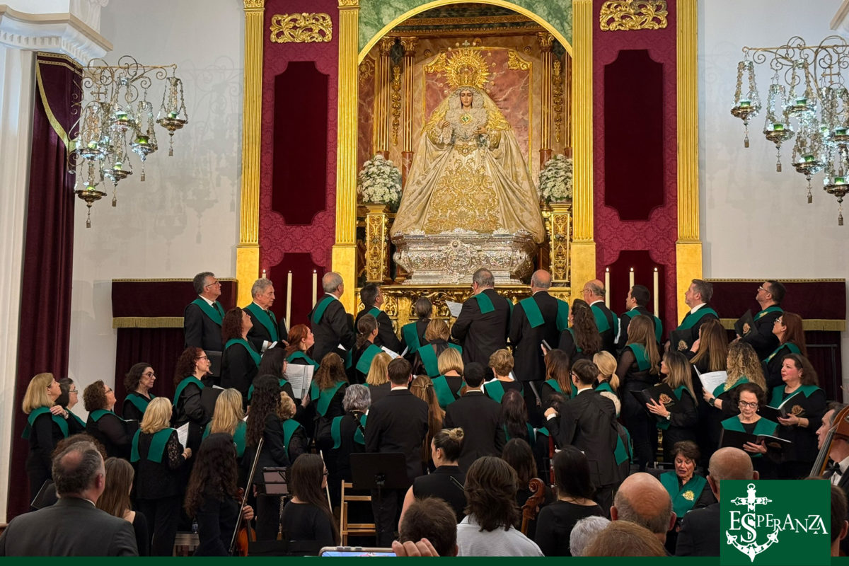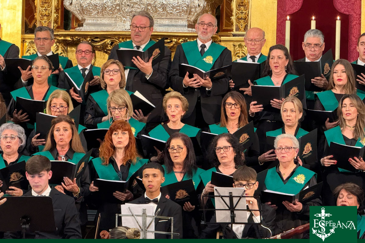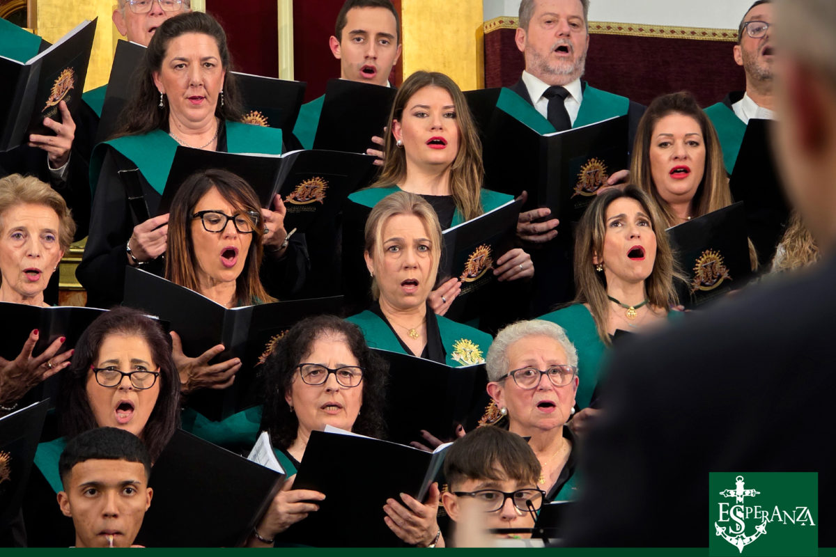 El acto culminó con la interpretación de la Salve a Nuestra Señora de la Esperanza, cantada por todos los integrantes de la Coral, de frente a la Virgen, en un momento de indescriptible recogimiento y emoción.