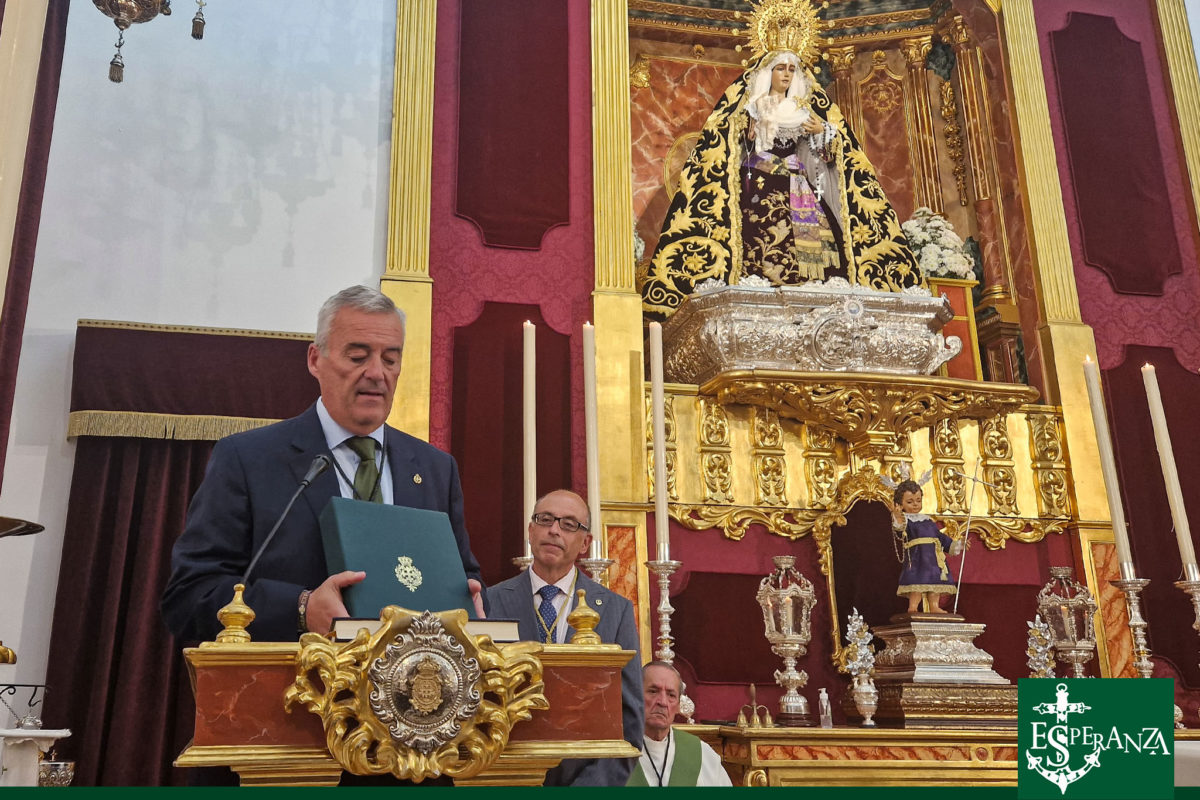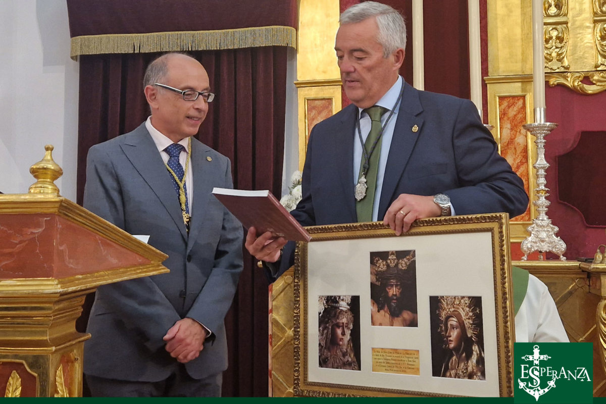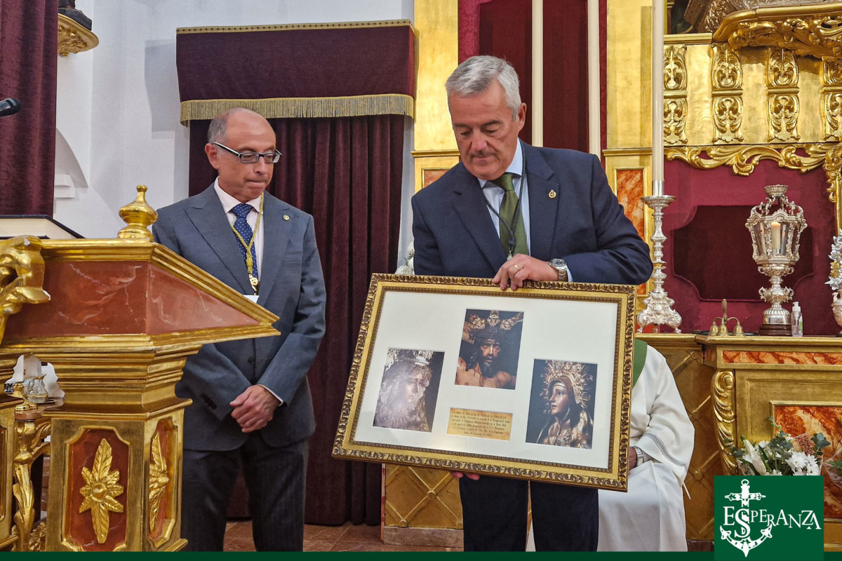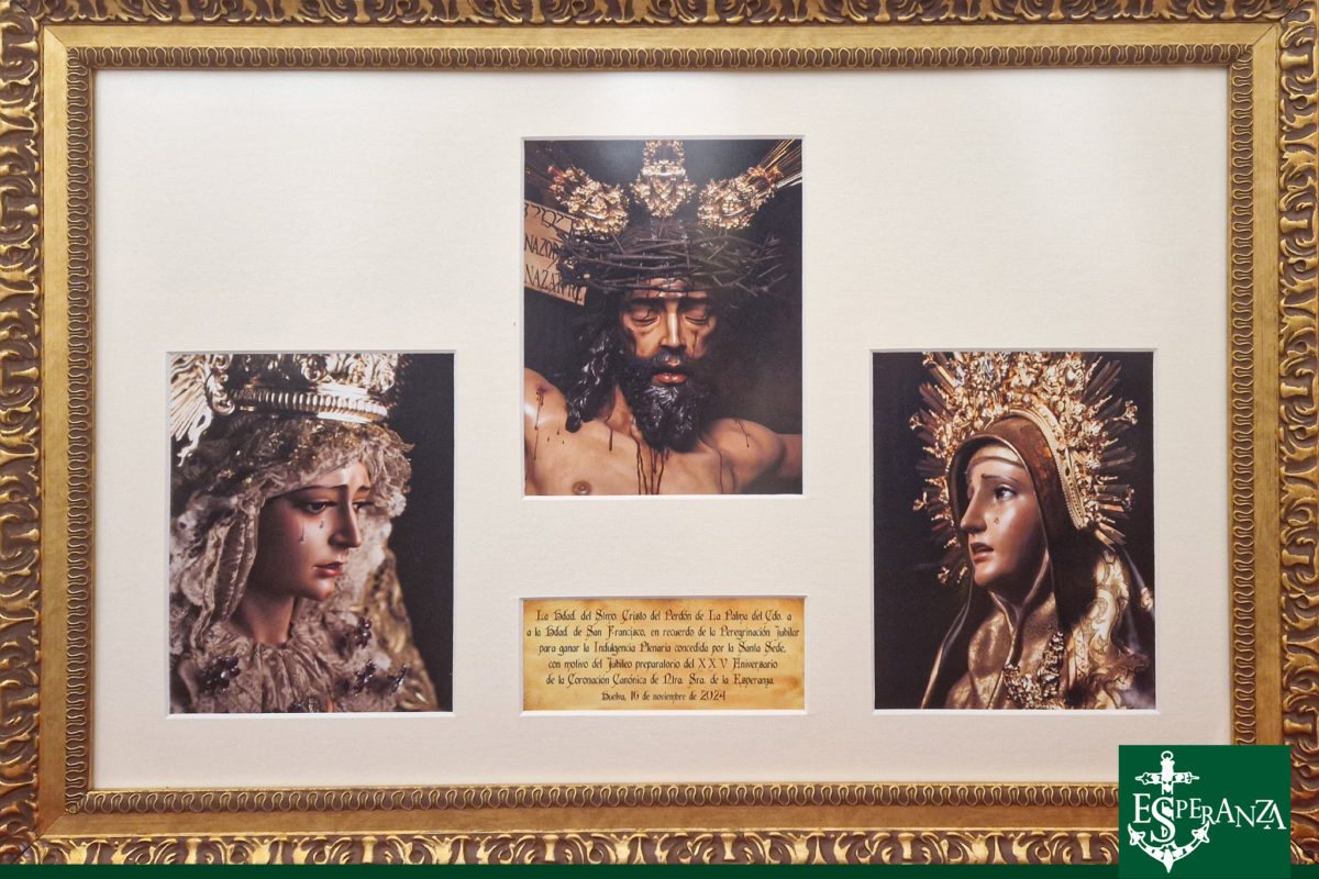 Durante el Transcurso de la Santa Misa, su Hermano Mayor nos hizo entrega de un cuadro con los Titulares de la Hdad. del Cristo del Perdón en recuerdo de su Peregrinación.