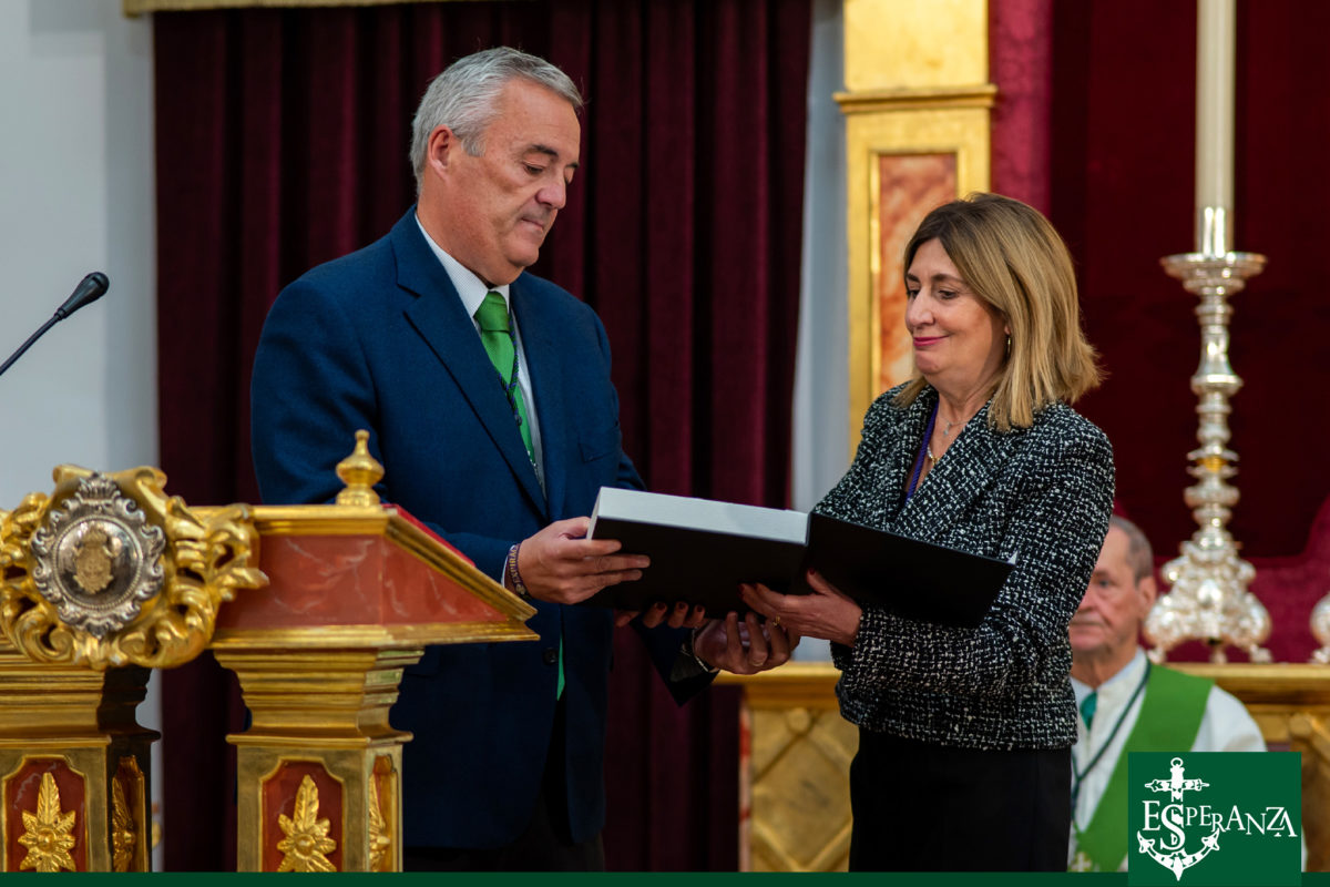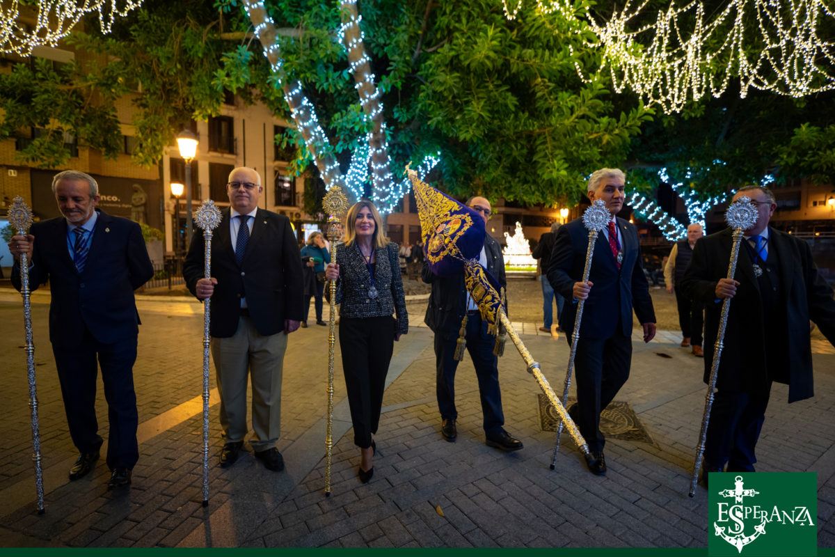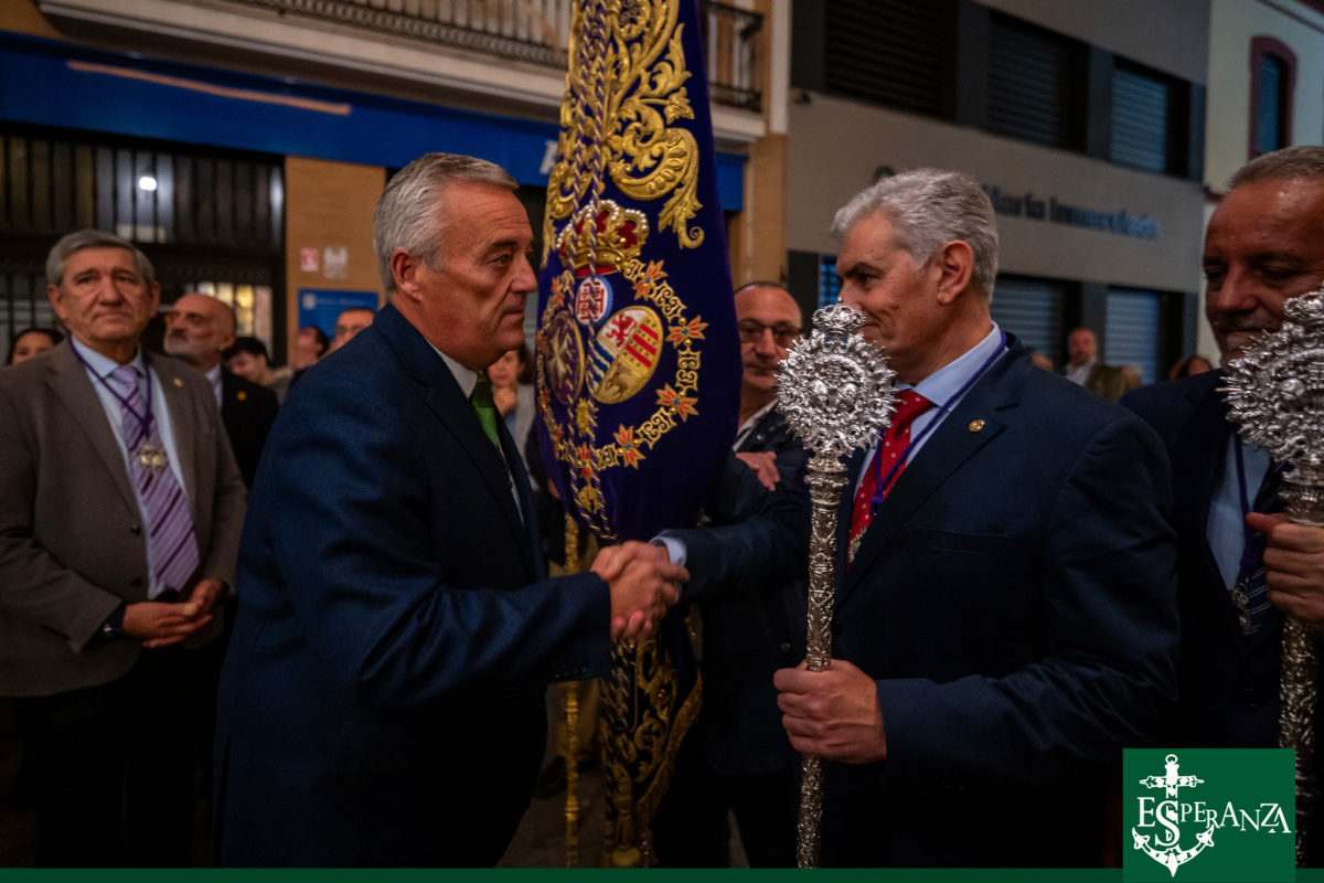 Al finalizar la celebración, el Hermano Mayor de la Hermandad de la Esperanza, D. José Manuel Mora Soler, felicitó a los hermanos del Nazareno por su nutrida participación, una de las más numerosas de cuantas han peregrinado durante este Jubileo, y entregó una metopa conmemorativa del XXV Aniversario como símbolo de unión fraterna. En respuesta, la Hermana Mayor del Nazareno destacó que “en la casa de la Esperanza, habita el Nazareno”, agradeciendo una vez más la hospitalidad y disposición de la Hermandad de San Francisco.