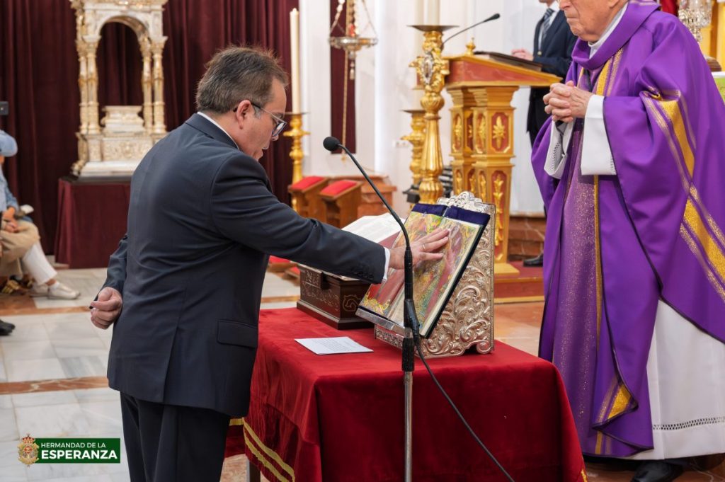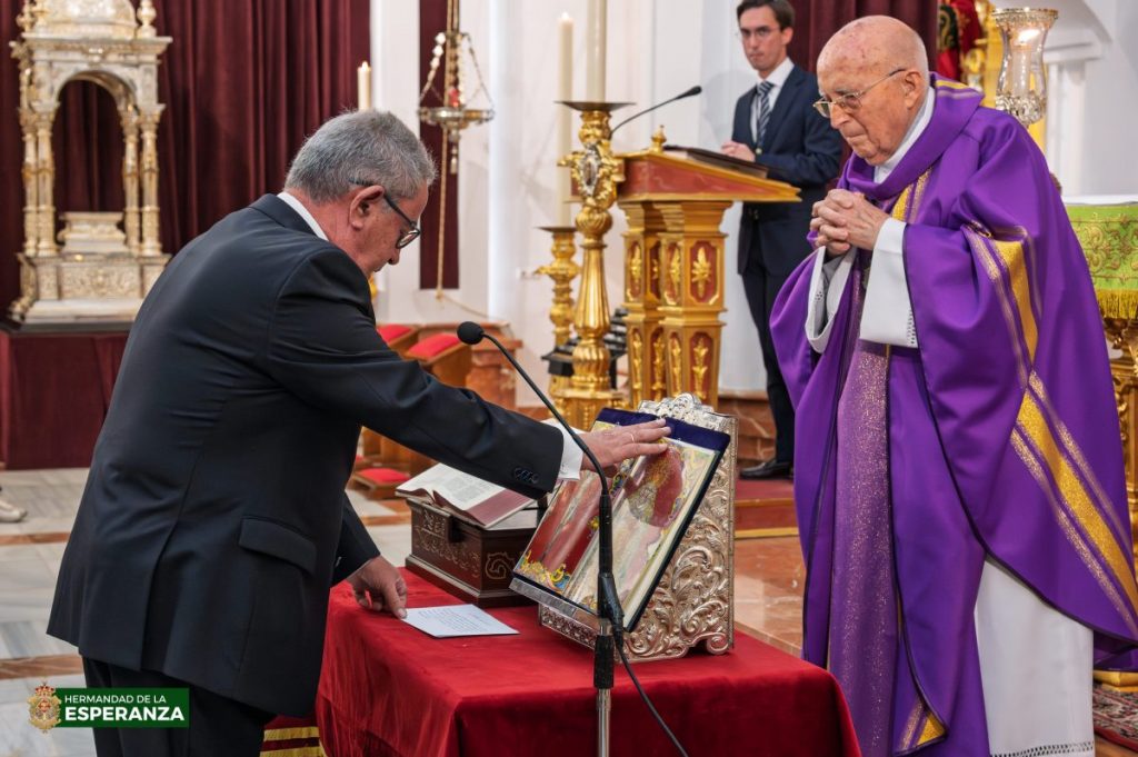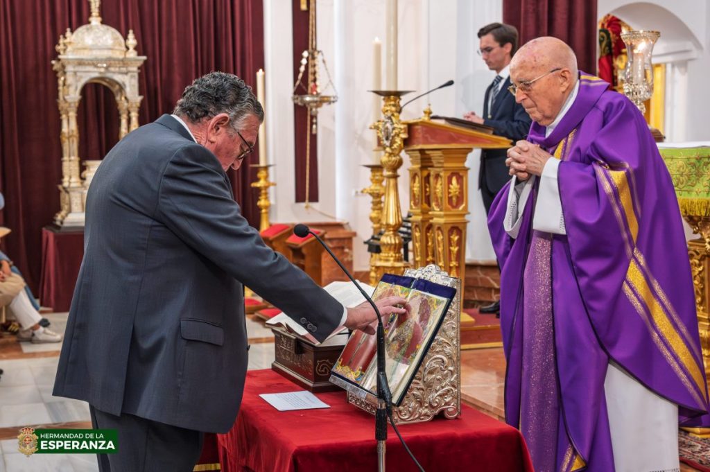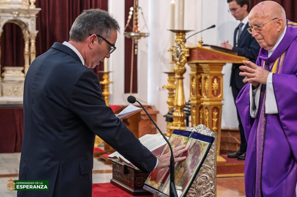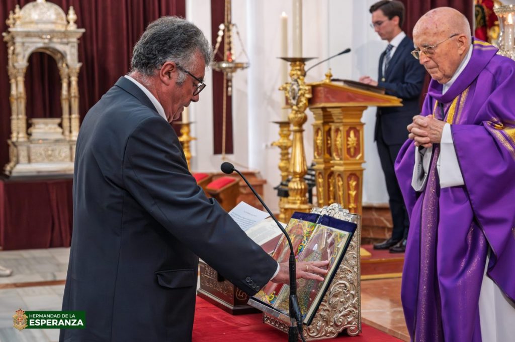 La Santa Misa fue oficiada por nuestro sacerdote y capellán, Rvdo. P. D. Longinos Abengózar Muñoz. Tras la homilía, el nuevo secretario fue nombrando a todos los miembros de la nueva Junta de Gobierno, los cuales juraron sus cargos ante los evangelios y las reglas de la Hermandad en un acto muy solemne.