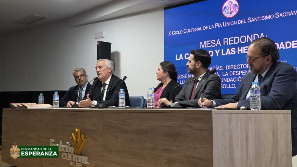 Durante esta jornada, nuestro Hermano Mayor, José Manuel Mora Soler, ha participado en la mesa redonda dedicada a los proyectos sociales, donde ha tenido la oportunidad de presentar y compartir la labor que se realiza desde la Despensa de la Esperanza, uno de los pilares fundamentales de la acción caritativa de nuestra Hermandad.